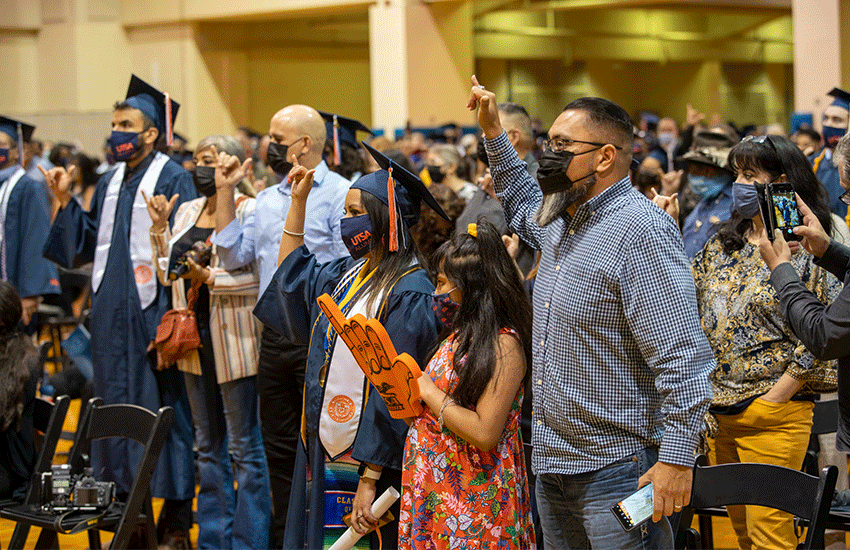 To promote the safety of UTSA’s graduates and volunteer organizers, the university is limiting Commencement ceremony guests to two individuals per graduate. However, online ceremonies will be livestreamed for real-time viewing by family and friends, with links available on the Commencement website starting the day of the ceremony.