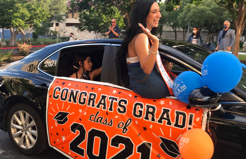 MAY 21, 2021 — From a parade where new grads soaked in the celebrity treatment to the long-awaited return of in-person Commencement ceremonies, last weekend was a whirlwind for UTSA’s Class of 2021.