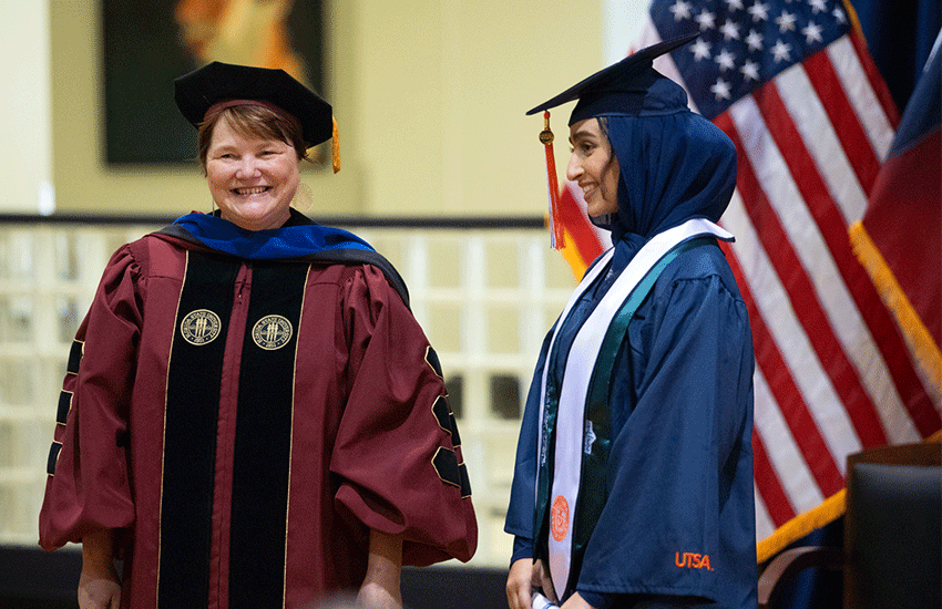 This spring’s Commencement ceremonies have been college-based and held at four Main Campus locations: Convocation Center, H-E-B Student Union Ballroom, Recreation Wellness Center and Retama Auditorium.