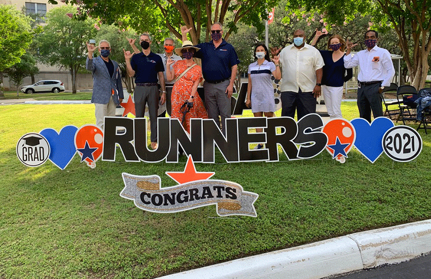 However, one tradition born during the COVID-19 pandemic has continued to be cherished by the Roadrunner community, as new graduates and their loved ones came out in droves for the latest rendition of the Commencement Drive on the evening of May 14. The honking car horns could be heard from Loop 1604 and UTSA Blvd. as graduates donning their regalia popped their heads out of orange-and-blue-clad vehicles to make some noise while parading around Main Campus. The university’s Facebook, Twitter and Instagram channels captured plenty of the celebration.
