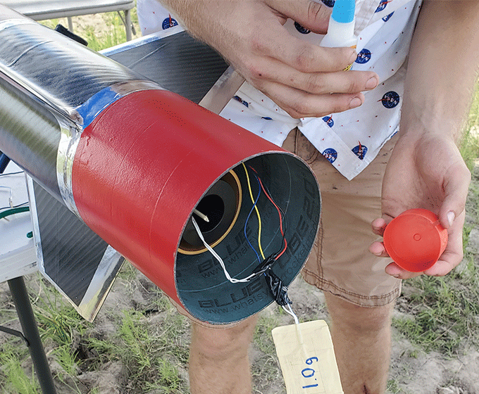 “Acme Co. has a lot of crowdfunded pieces on it. The fins have names of everybody who donated on it. There are decals on the booster and sustainer for people who paid for that,” Patrick said. “We’re going to send pics to show our backers their names are a real blast.”