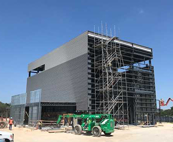 Since September 2017, Turner Construction Company has focused its manpower on erecting the steel building. Crews completed work on the building’s unique strong floor in February. Under the strong floor is a basement structure for researchers to perform their work.