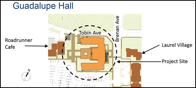 Construction of Guadalupe Hall will begin in fall 2019. Students are expected to move into the 101,351 gross-square-foot structure in 2021. With a projected cost of $43.6 million, $38.6 million will come from the Revenue Financing System. The remaining funds will come from UTSA reserves.