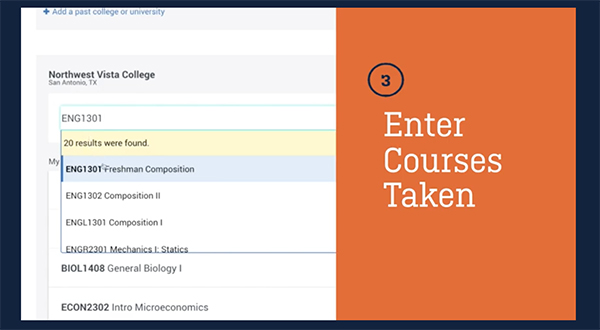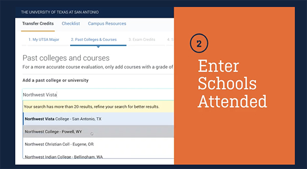 “The calculator has made the transfer process so easy,” said Valero. “It’s helped me figure out which of my courses will transfer to UTSA, and I like that I can see my saved results on my profile.”