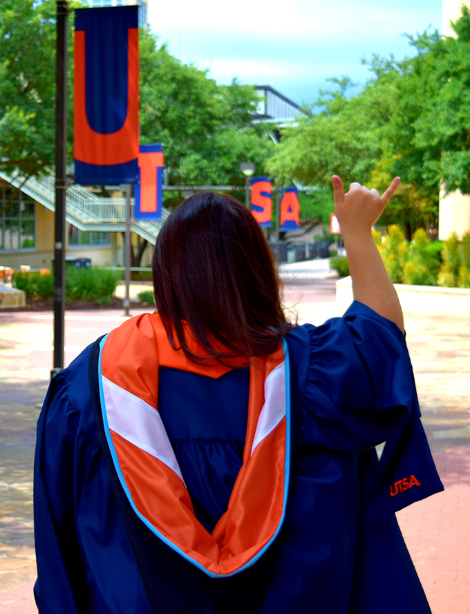 Graduation photos are the highlight reel of your college career. Have fun and remember to smile—it’s your time to shine! Share your photos with us on social media using the hashtag #UTSAGrad20.