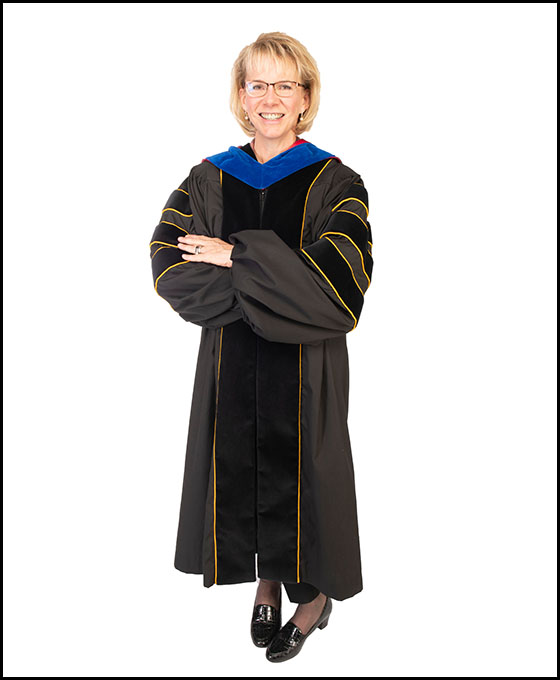 Provost Kimberly Andrews Espy wears regalia representing her Ph.D. in clinical neuropsychology from the University of Houston.