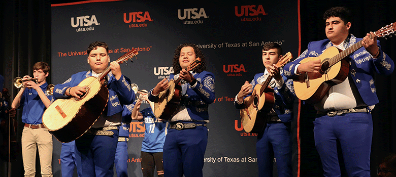 The event included special remarks from UTSA Provost and Senior Vice President for Academic Affairs Kimberly Andrews Espy and Northside Independent School District Superintendent and UTSA alumnus Brian T. Woods ’98, ’12. Torres and guests were treated to musical performances by the John Jay/Science & Engineering Academy high school choir, the Jones Middle School Choir, John Jay’s Mariachi Jalisco group and the school’s Mighty Mustang Band. Students from Mary Hull Elementary recited the Pledge of Allegiance and Texas Pledge in both English and Spanish.