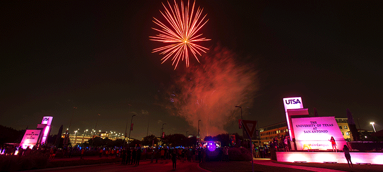 Midnight Light occurs at 11:30 p.m. on Sunday, August 21. This tradition showcases music, dancing, giveaways and fireworks on the night before the first day of classes. Roadrunners have been gathering together yearly since 2014 for this special experience. It is here that students learn the meaning of the monument lights, hear messages of welcome from key individuals and celebrate the new academic year alongside fellow Roadrunners.
