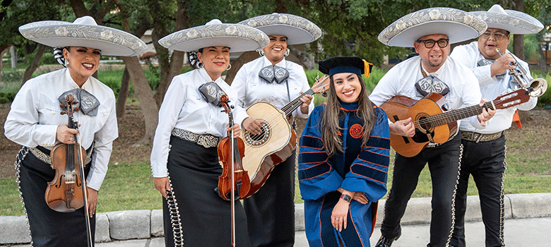 At UTSA, the gowns and mortarboards are navy blue, one of the university’s official colors.