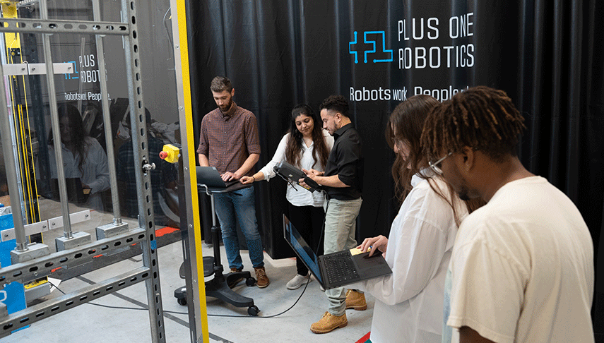 Shaun Edwards, chief technology officer and co-founder of the firm, said gaining hands-on experience as a student is critical for future careers in the evolving technology industry. Plus One Robotics uses artificial intelligence to automate robots in warehouses and distribution centers.